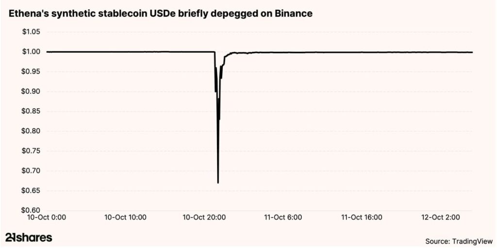 Why did Ethena’s stablecoin remain stable onchain but depegged on Binance?