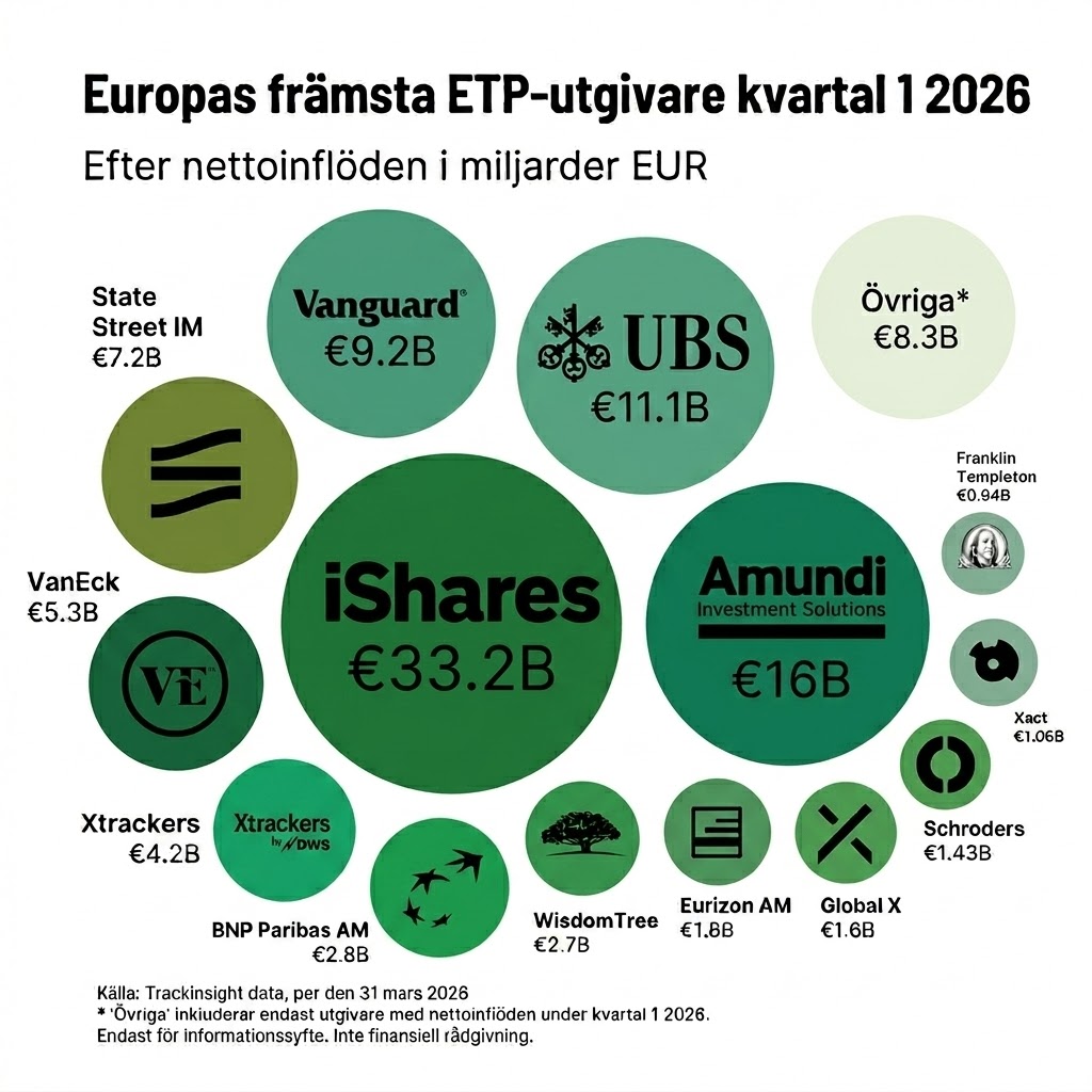 Europeiska börshandlade fonder såg nettoinflöden på 100 miljarder euro under Q1 2026